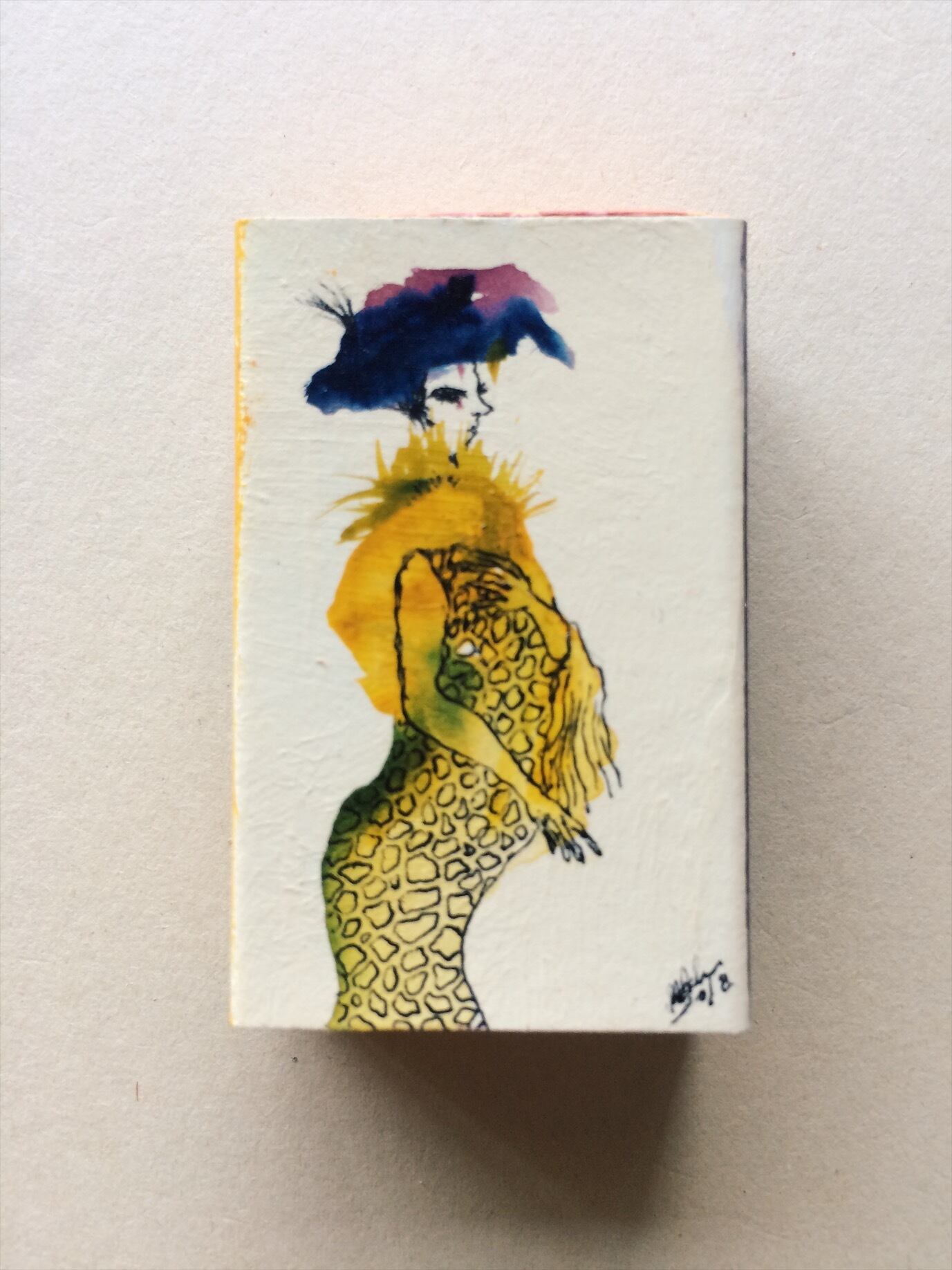 無地のマッチ箱に下地剤とアクリル絵具で彩色。