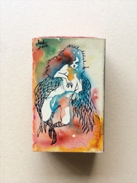 無地のマッチ箱に下地剤とアクリル絵具で彩色。